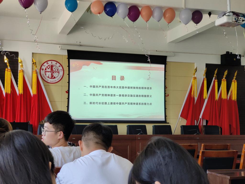 宣讲中,王易教授紧紧围绕"中国共产党精神谱系",从中国共产党在百年伟大实践中建树独特的精神谱系、中国共产党精神谱系一脉相承交融互通的精髓要义以及新时代长征路上赓续中国共产党精神谱系的着力点等三个方面进行了深入阐述。