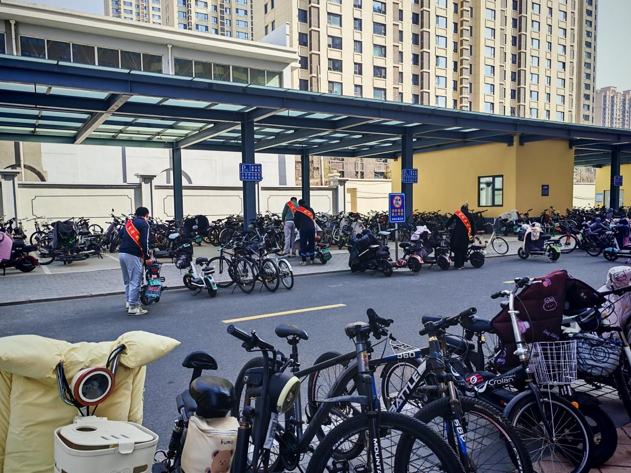 活动中,党员们分工协作,对楼宇周边乱停乱放的电动车、自行车进行集中整理、规范摆放,及时清理堵塞通道、影响通行的车辆,有效改善了宿舍楼宇周边环境,维护了整洁有序、安全畅通的校园秩序。