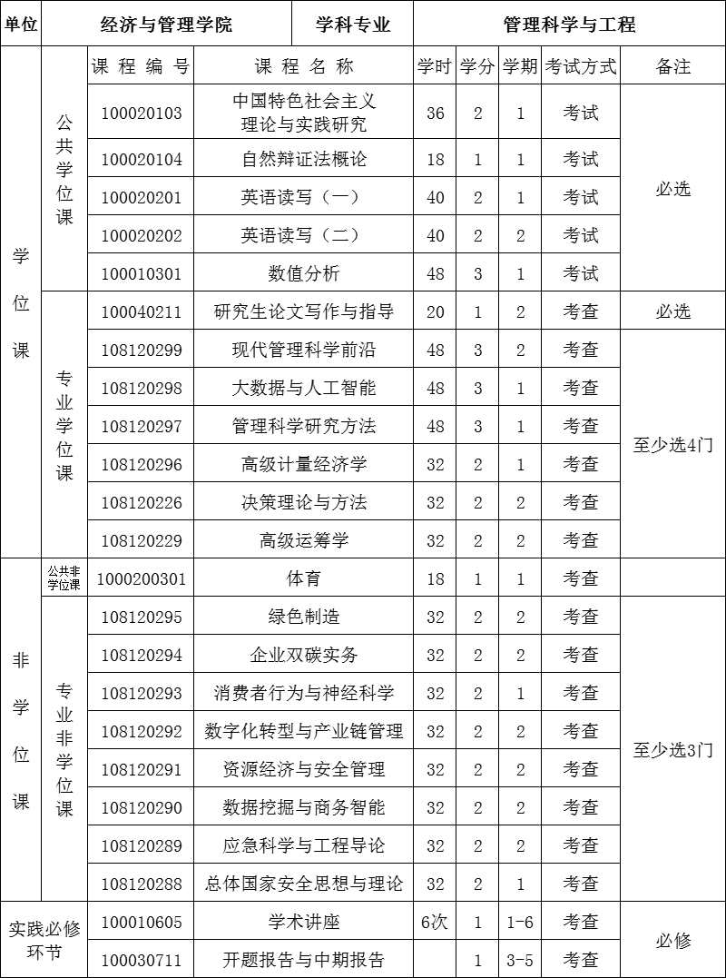 注:硕士研究生总学分应修满32学分,其中课程学习不少于24学分,学位课不低于20学分。在申请答辩之前要修满所要求学分。