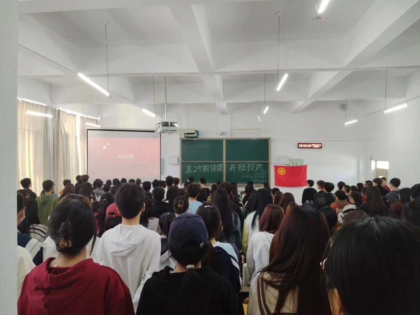 在团课开班仪式上,团总支负责员工干部对本次团课开展的具体事宜做出要求,表示希望同学们能抓住这次机会,认真学习共青团的理论知识和团员准则标准,提高思想素质,更好地融入团组织。此期团课主要教学课程内容分为理论教学和实践教学两个环节。在理论教学部分,王玉泉书记讲授以“从百年历史看党的宗旨内涵的演进”为主题的团课,张雪薇老师为同学们讲授了共青团的基础知识,王伟琳警官开展防诈与安全专题团课。