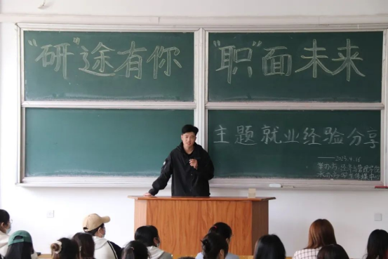 为了帮助员工更好地了解当前考研及就业形势,引导员工精准把握就业方向,提前规划未来的学习生活,树立正确的就业观、择业观。永利3044集团官网在4月16日上午9:30,于主校区春晖学堂F209,开展了经管学院“‘研’途有你‘职’面未来”就业经验交流活动。此次活动邀请到国际经济与贸易专业丁宇利、人力资源管理专业朝宝力嘎、国际经济与贸易专业郭楠、金融专业王儆四位19级永利3044集团官网优秀学长学姐代表,分别向学弟学妹们讲解考研和就业方向等相关问题。