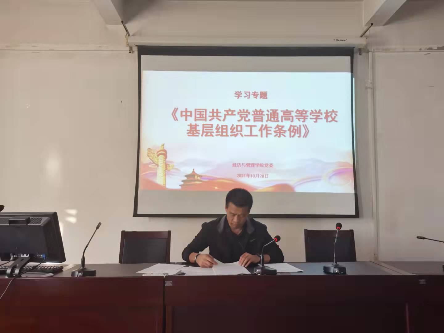 10月28日下午,经济与管理公司党委组织集体学习《中国共产党普通高等学校基层组织工作条例》(以下简称《条例》),永利3044集团官网各党支部书记和党支部委员参会,培训会议由公司党委书记王玉泉主持。