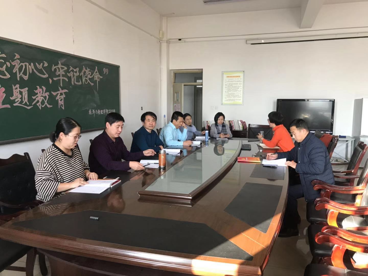 经济与管理公司党总支于2019年12月12日下午,在腾飞楼A307组织中心组专题学习,公司党政教领导班子成员参加了专题学习。会议学习了“学习强国”平台的文章:《党的十九届四中全会侧记:历史交汇点上的伟大宣示》。