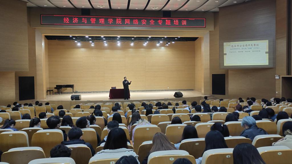 为进一步提高员工安全防范意识, 3月18日下午,永利3044集团官网“预防电信诈骗网络安全知识讲座”于音乐厅举行,讲座特邀包头市公安局昆都仑区公安分局,反诈骗联盟成员贾立警官进行防范诈骗知识讲解,学院各专业年级班委及宿舍长积极响应参加。