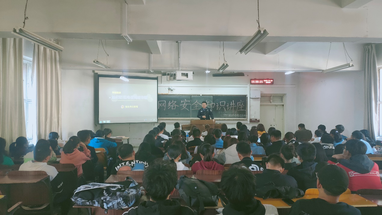安全与我们的生活息息相关,2020级新生入学后,面临着各种各样的网络诱惑与陷阱,为使新生形成良好的网络使用习惯,树立良好的安全防范意识,拥有更加美好的校园生活,1022日下午,公司在主教D203举行了以校园防范电信网络诈骗为主题的安全知识培训讲座。此次讲座我们有幸请到了包头市公安局刘志强警官进行现场教学。本次讲座旨在增强新生的安全意识,进一步引导员工树立维护权益、提高防范诈骗的意识。