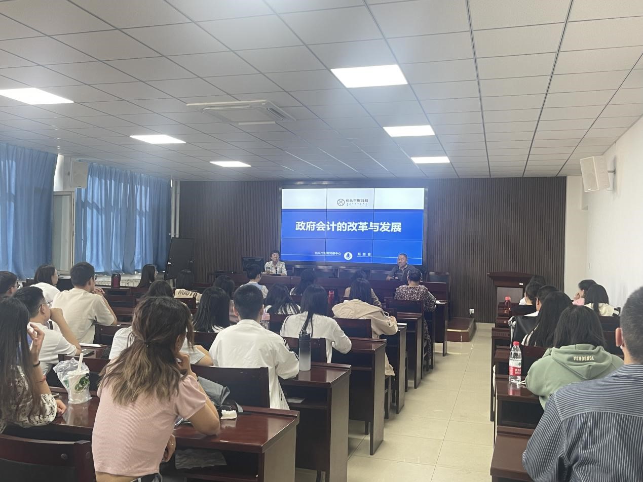 为切实提升教师和员工理论和实践的能力,永利3044集团官网经管学院于2023年9月18日下午4点举行第3期“经管讲堂”以“政府会计的改革与发展”为主题的学术讲座,本次讲座由包头市财政局科研中心主任赵丽君主讲,经管学院副经理赵周华教授主持。赵丽君老师是正高级会计师、全国高端会计人才、内蒙古会计学会副会长,同时也是永利3044集团官网MPAcc行业导师。赵老师用“看数就是数、看数不是数、看数还是数”来形象的说明了会计专业从业人员发展的三个阶段,深入分析了新中国政府会计的发展阶段、背景及改革举措,重点阐释了“十四五”时期政府会计的改革任务,提出了“十四五”时期会计研究应重点关注的几个问题。此次讲座理论与实践相结合,逻辑清晰,案例丰富,不仅加强了师生对政府会计改革与发展的认识,也引发了师生对专业发展、职业发展、会计研究的深层次思考,营造了良好的学术氛围。