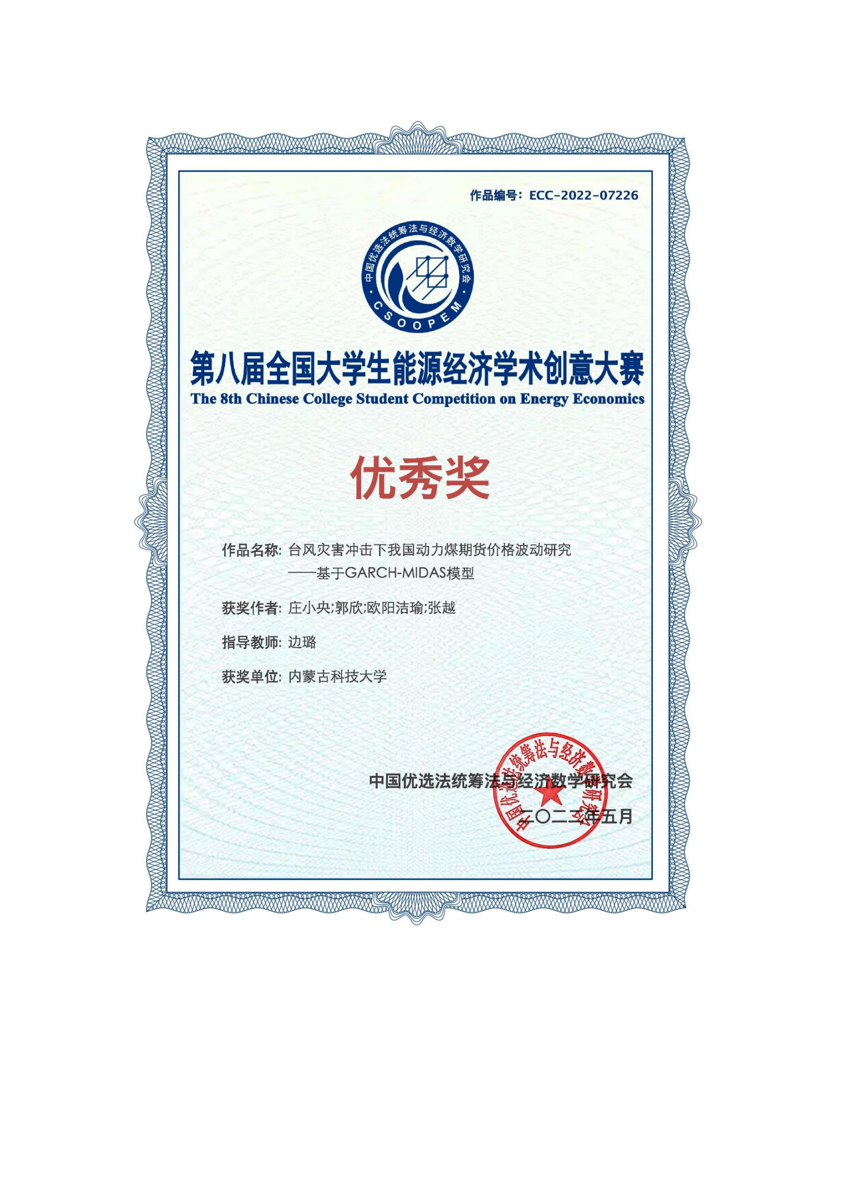 下一条:永利3044集团官网师生荣获第八届全国老员工能源经济学术创意大赛 第5赛区-研究生队 二等奖